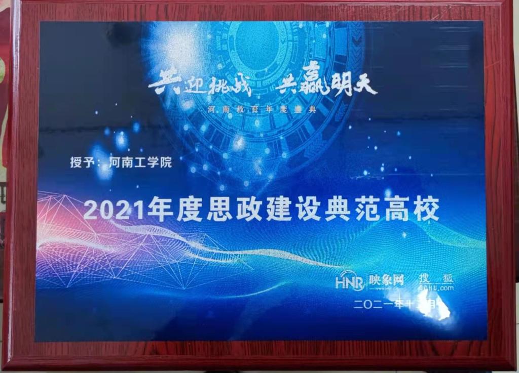 近日,河南工学院在映象网、搜狐河南主办,河南教育联盟承办的2021河南教育年度盛典中,荣获“2021年度思想政治建设典范高校”称号。