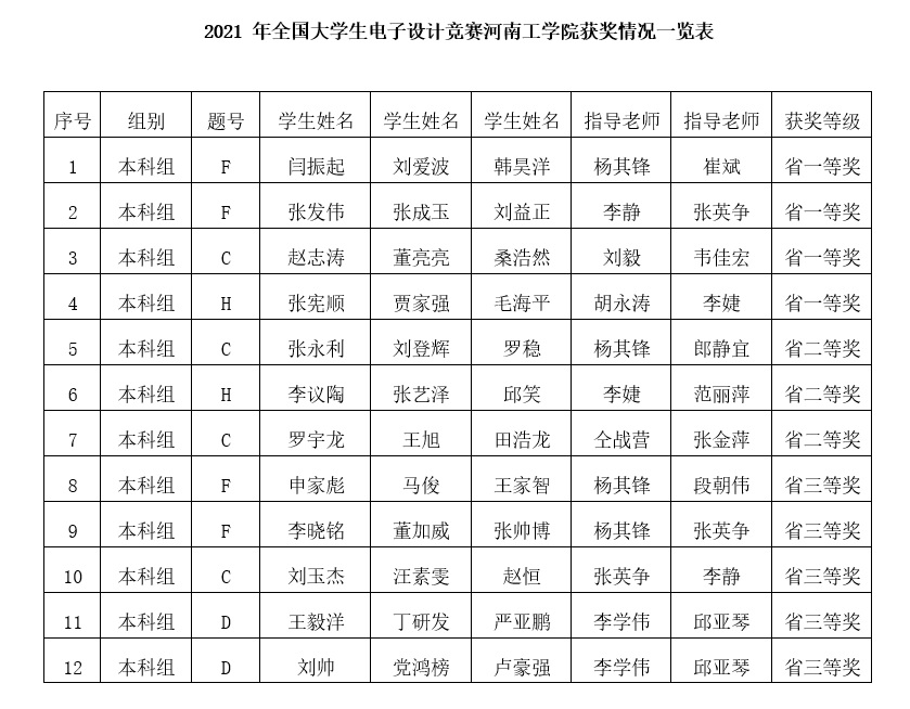 近日,在“2021年全国大学生电子设计竞赛”河南赛区比赛中,由我校选拔出的14支队伍,共取得河南省一等奖4项、二等奖3项、三等奖5项的优异成绩。