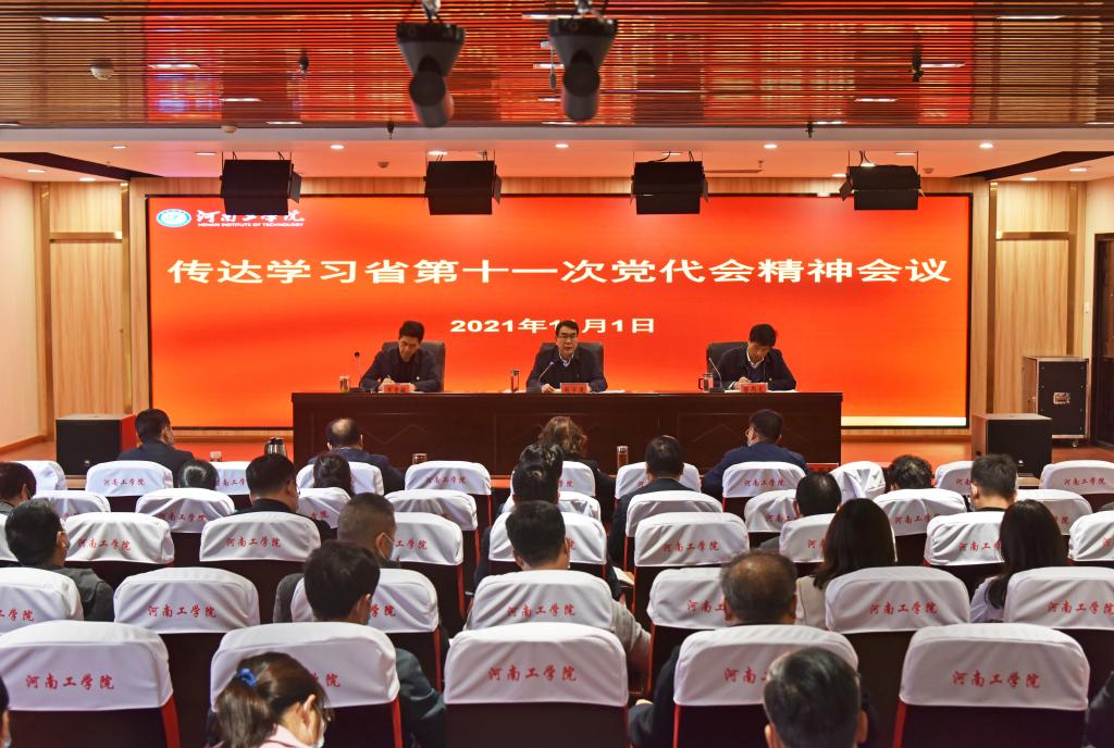 会议传达学习了省第十一次党代会上楼阳生书记所作的《高举伟大旗帜牢记领袖嘱托为确保高质量建设现代化河南确保高水平实现现代化河南而努力奋斗》的报告,深刻领会报告中提出的高等教育事业发展新要求,动员全校上下以党代会精神为指引,加快推进省示范性应用技术类型本科高校建设,为建设国家创新高地贡献河南工学院力量。