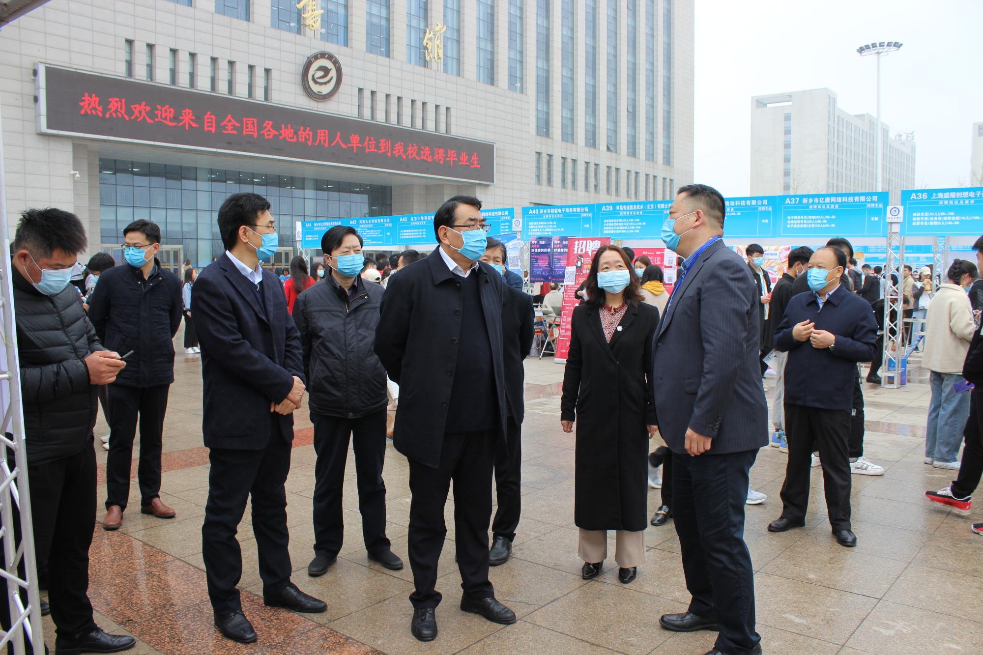 招聘会现场,校党委书记赵学通、党委副书记李贵敏、副校长刘莉莉、戚新波、校纪委书记樊羁光等领导在与招聘单位亲切交谈,了解招聘情况,听取用人单位对学校人才培养的意见和建议。