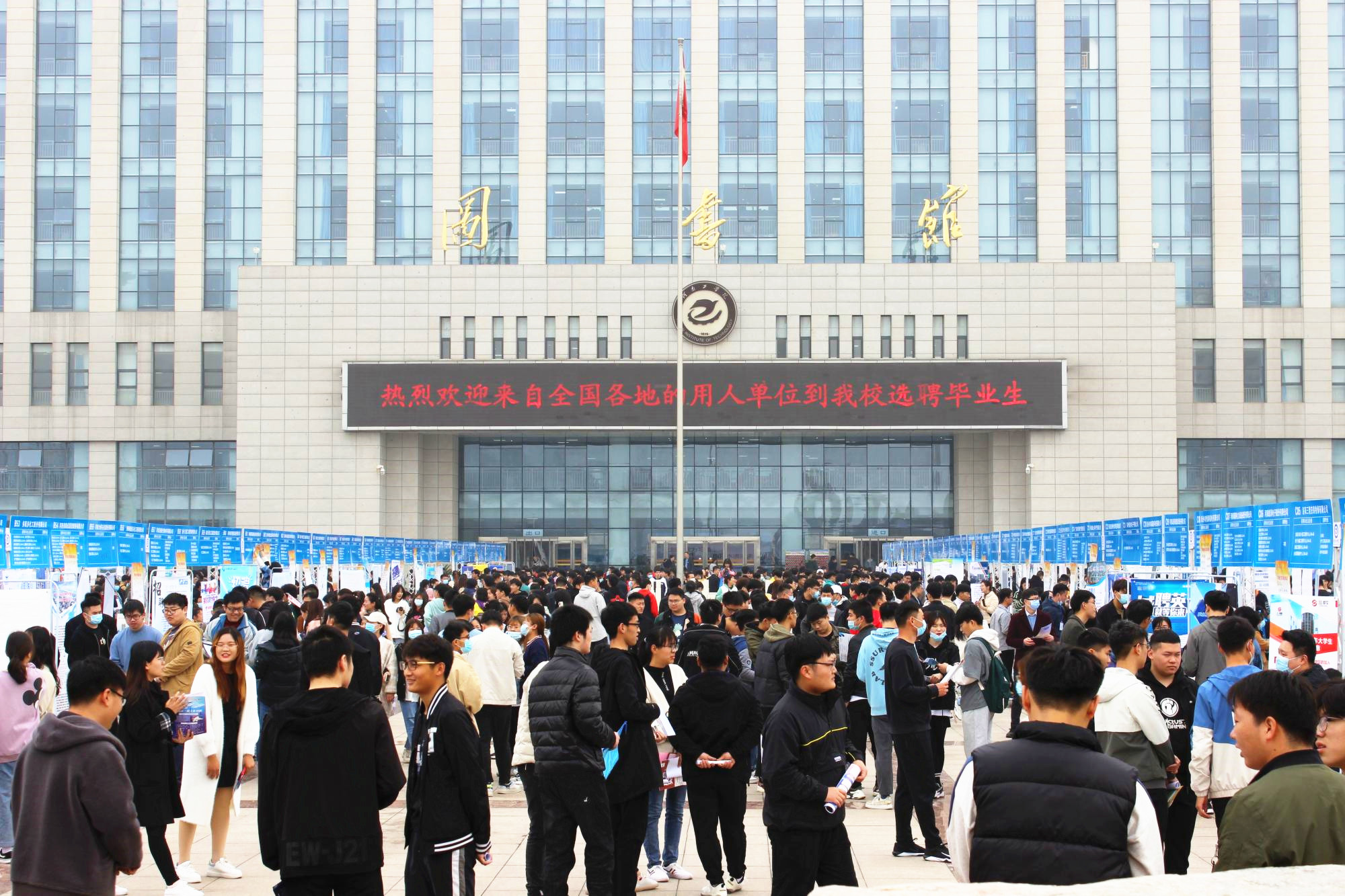 3月27日,我校2021届毕业生春季招聘会在学校致远广场举行。招聘会采取线上线下同步进行,来自全国各地的407家用人单位莅临现场,近200家用人单位线上招聘,共发布岗位需求37499个,现场达成就业意向近2000份。