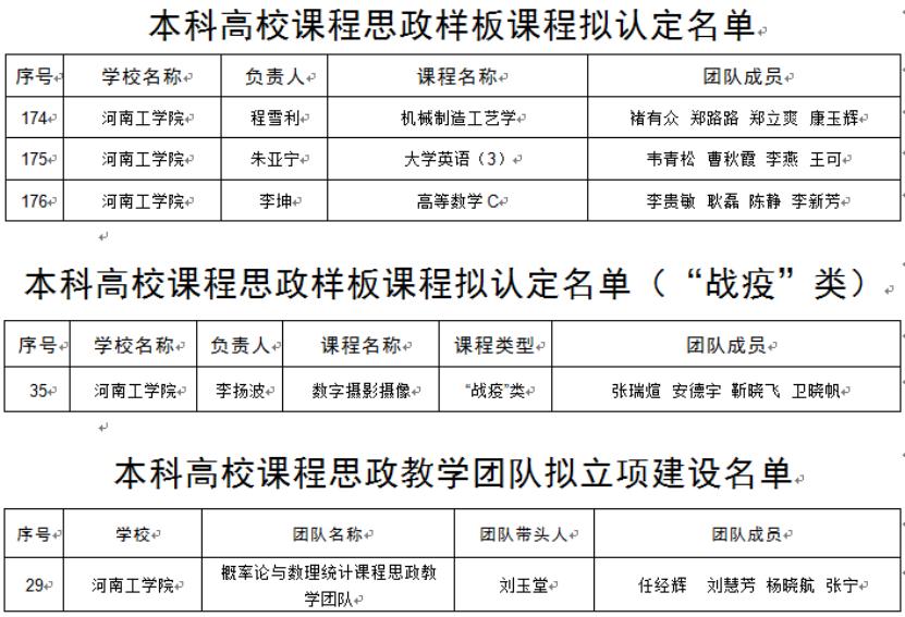 近日,河南省教育厅公布了河南省本科高校课程思政项目拟立项建设名单。我校“机械制造工艺学”“大学英语(3)”“高等数学C”3门课程被认定为省级课程思政样板课程,“数字摄影摄像”课程被认定为省级“战疫”专题课程思政样板课程,“概率论与数理统计课程思政教学团队”获批省级课程思政教学团队。