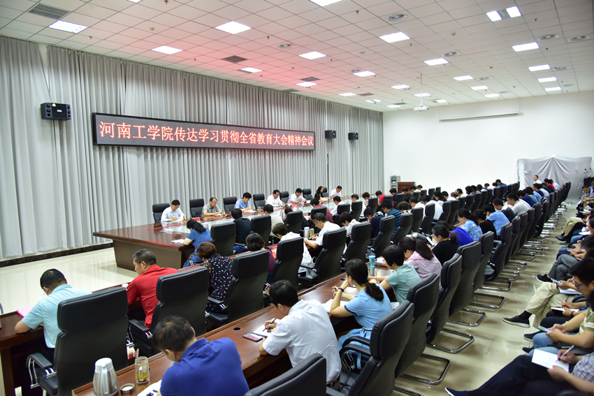 赵学通同志强调,学习贯彻习近平总书记关于教育工作的重要论述和全国全省教育大会精神,是学校当前和今后一个时期的重要政治任务,全校上下要牢牢抓住这次教育大会的历史性机遇,把贯彻大会精神与落实学校“十三五”规划、建设合格本科院校结合起来,确保大会精神在学校落地生根、取得实效。一要提高政治站位,把思想认识统一到大会精神上来。要自觉把思想和行动统一到习近平总书记对教育工作的重要论述上来,统一到王国生书记、陈润儿省长的讲话精神上来,统一到加快教育现代化、建设教育强省的安排部署上来,树牢“四个意识”,坚定“四个自信”,做到“两个维护”。二要坚持学做结合,把大会精神科学运用到学校实际工作中去。要通过多种形式,开展生动多样的宣传解读,把大会精神讲清楚、讲明白,让师生听得懂、能领会、可落实。要紧紧围绕合格本科院校建设目标,开展大调研活动,切实解决学校发展短板,强化内涵建设,不断提升学校核心竞争力。三要强化责任担当,确保大会精神落地生根、取得实效。全校要按照学校学习贯彻实施方案,强化责任担当,把学习贯彻大会精神与“不忘初心、牢记使命”主题教育活动、工作落实年结合起来,建立问题清单、任务清单和责任清单,明确总体要求,突出工作重点,以扎实的举措、严谨的作风,着力推动全国全省教育大会精神在学校落地生根。