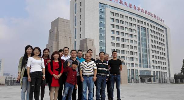 图10 校友们在新区校门及创新大楼合影留念