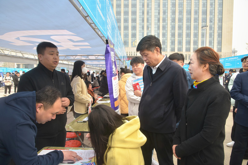 校党委书记、校长陈丙义,党委副书记、副校长梁静,副校长刘莉莉、戚新波、张国臣深入招聘会现场,与用人单位面对面交流,了解企业发展与人才需求情况,向招聘企业介绍学校的人才培养特色;与参会的毕业生亲切交谈,了解其求职择业意愿,鼓励其树立正确的择业观,做好长远职业规划,引导毕业生理性看待就业形势,把握政策导向,转变就业观念。