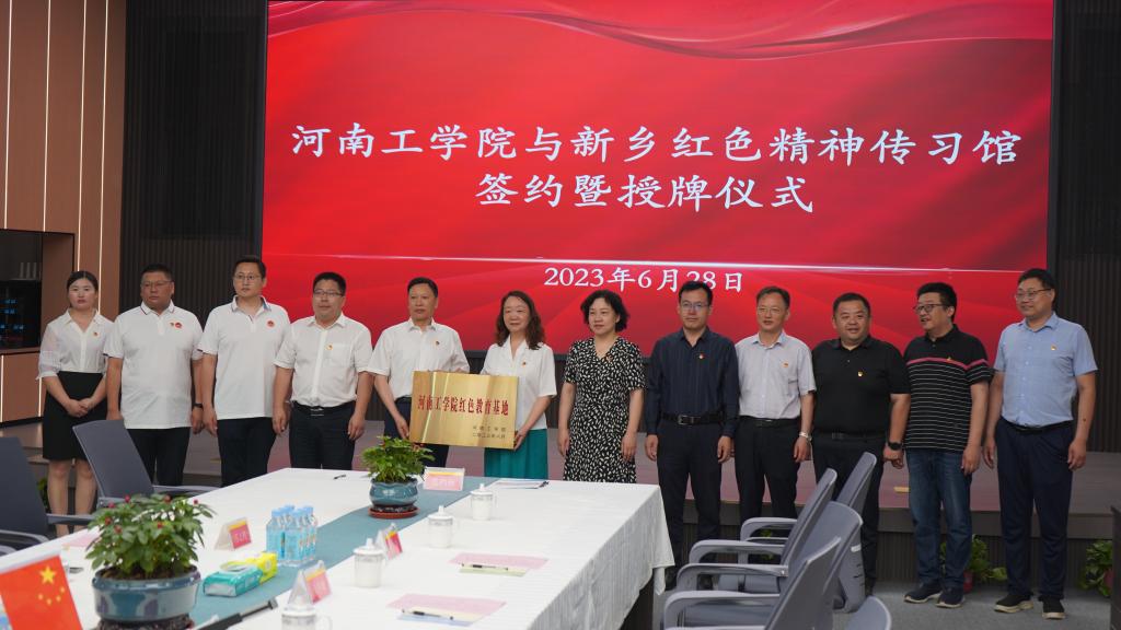 6月28日上午,河南工学院-新乡红色精神传习馆红色教育基地签约暨授牌仪式在新乡市亿丰混凝土有限公司举行。副校长刘莉莉、新乡市凤泉区统战部部长万江红、凤泉区大块镇党委书记郝现军、新乡市亿丰混凝土有限公司董事长苏东生,我校教务处、教学质量监控与评估中心、人文素质教育中心、马克思主义学院等部门负责人及有关人员参加了仪式。