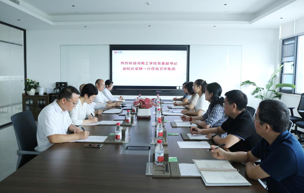 8月2日上午,校党委副书记、副校长梁静带领科研处、机械工程学院等部门负责同志赴卫华集团进行调研交流,调研交流座谈会由卫华集团副总裁马辉艳主持,双方围绕进一步深化产教融合和校企合作进行深入交流。