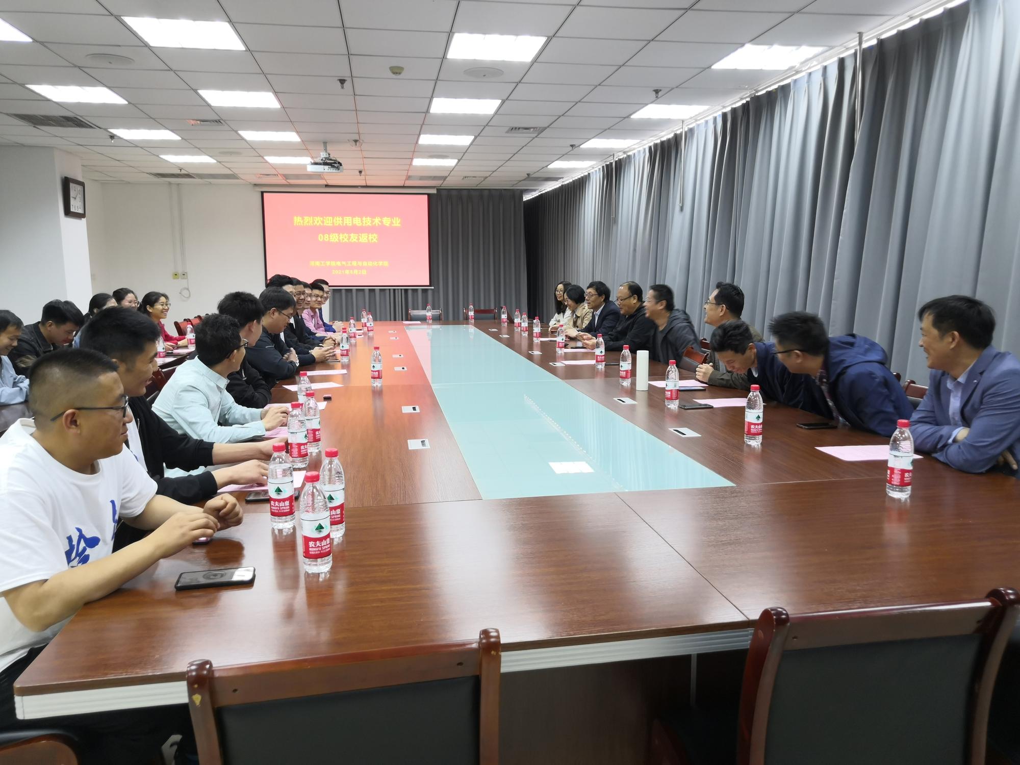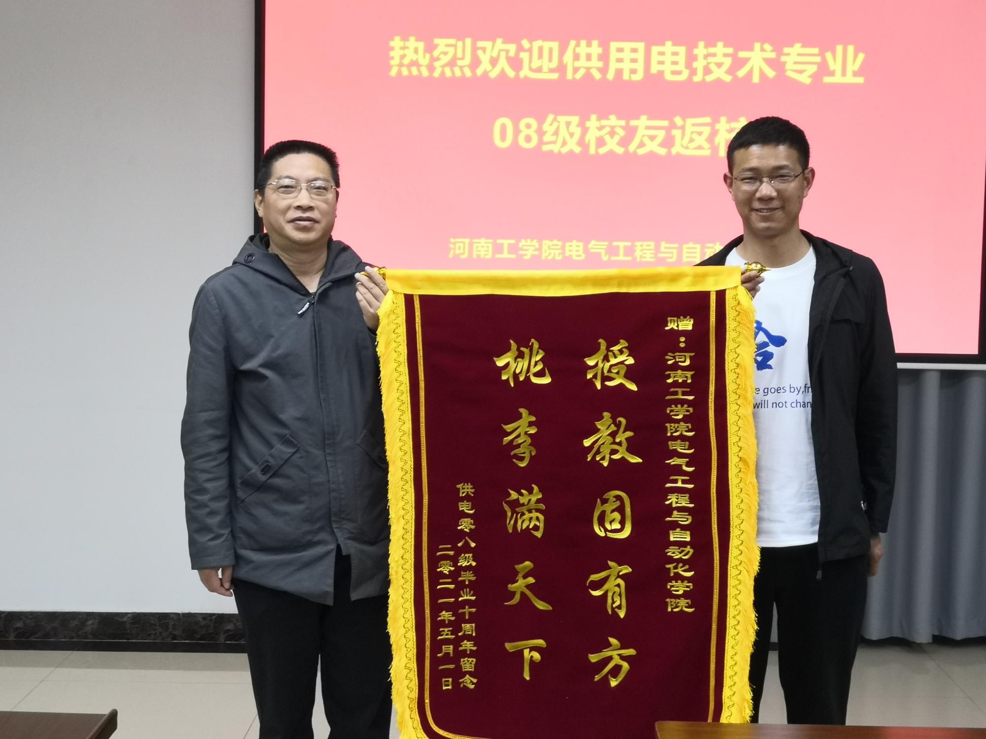 2021年5月2日,供用电技术专业2008级毕业生毕业十年后重返校园,看望老师,回忆校园美好时光,纵论人生事业发展,欢聚一堂重温同学情谊。本次活动由来自全国各地的30余名毕业生参加,他们现在从事供电、电缆、自动化设备等各行各业,能力卓越、成绩斐然,回到母校,感谢师恩!同学们到校后,游览校园风光,举行师生座谈会,并赠送锦旗和礼物给母校。