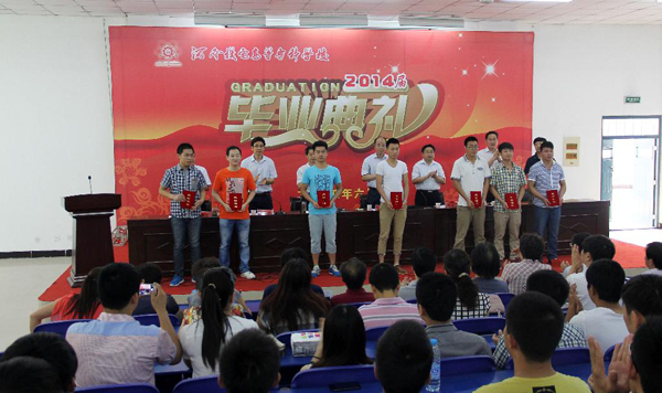 6月9日上午,河南机电高等专科学校2014届学生毕业典礼在公教楼A105会议室隆重举行。校党委书记李勇,校长罗士喜,党委副书记刘云兵、贾国强,副校长李贵敏、郭京普、戚新波出席典礼并在主席台就坐。相关处室、系部负责人,教师代表,辅导员代表及500多名毕业生代表参加了毕业典礼。毕业典礼由副校长李贵敏主持。