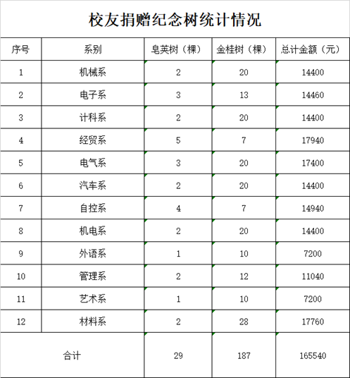 校友们的点滴行动化作一片绿荫,永远茂盛于母校校园,在茵茵校园里留下校友们的根,见证每一个学子的成长印记,茁壮长成一片茂密的“校友纪念林”,传承源远流长殷殷母校情。