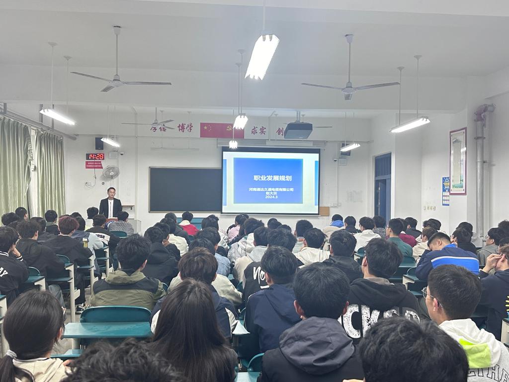 3月23日下午,河南通达久通电缆有限公司总经理,我校杰出校友,2009届毕业生赵大贝返回母校,在教7楼509和电缆工程学院学生分享自己的成长经历,我院师生共200余人聆听了报告。