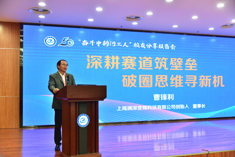 郑先锋在致辞中指出,在这场特别的分享盛会中,四位从河工走出的优秀校友重返母校,与即将启程的大三、大四学子共话“破圈”与“深耕”。他们中有潜心学术的博导,也有勇闯市场的创业者,他们以亲身经历展现了两种力量的交融:既需“深耕”的定力积累专业厚度,也需“破圈”的勇气去拓展人生边界。站在人生关键节点的同学们或许正面临方向的选择与未来的焦虑,今天四位校友的经历印证了“破圈”与“深耕”并非对立,而是相辅相成,扎实的专业根基是突破的底气,而无畏的尝试则为深耕注入新活力,值得在校的和即将迈入社会的同学思考、借鉴。