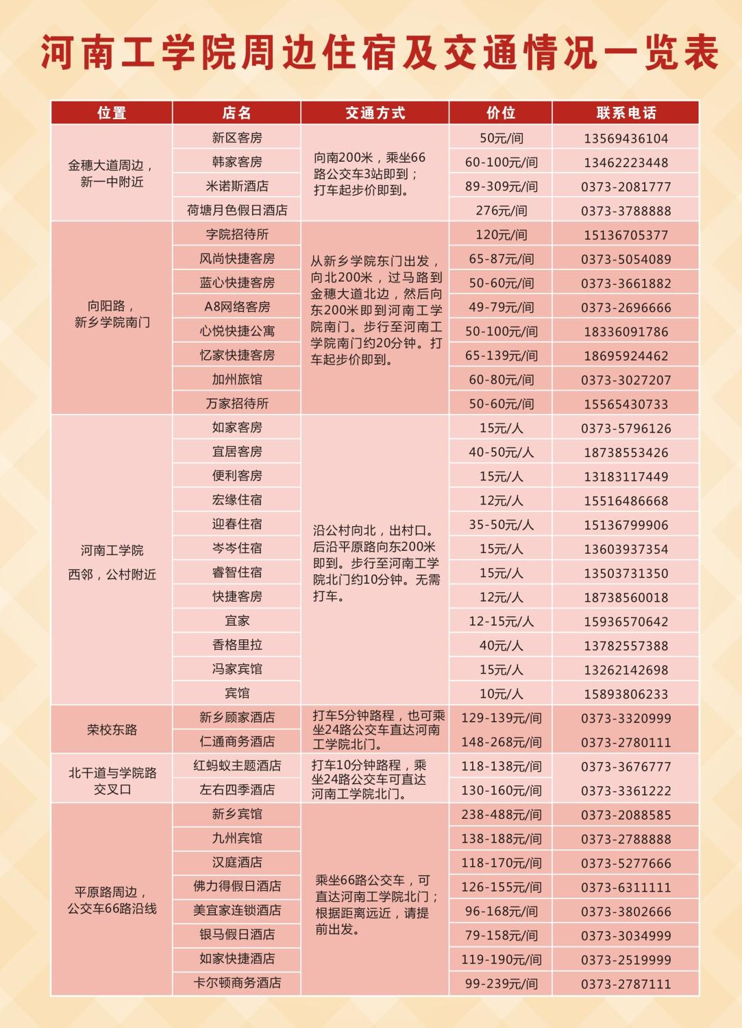 学校周边交通及住宿一览表