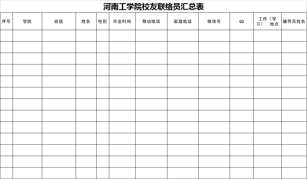 河南工学院校友联络员登记表(应届毕业生校友联络员)